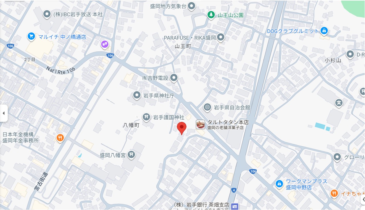国道4号線と国道106号線の交差点付近。お菓子屋「タルトタタン」さん裏